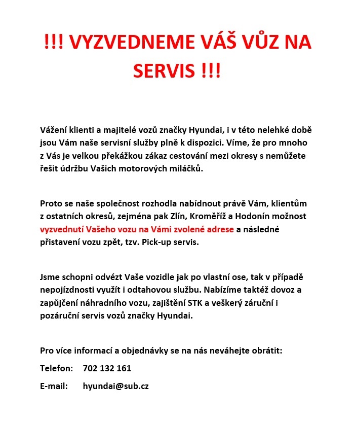 AKCE – VYZVEDNEME VÁŠ VŮZ NA SERVIS
